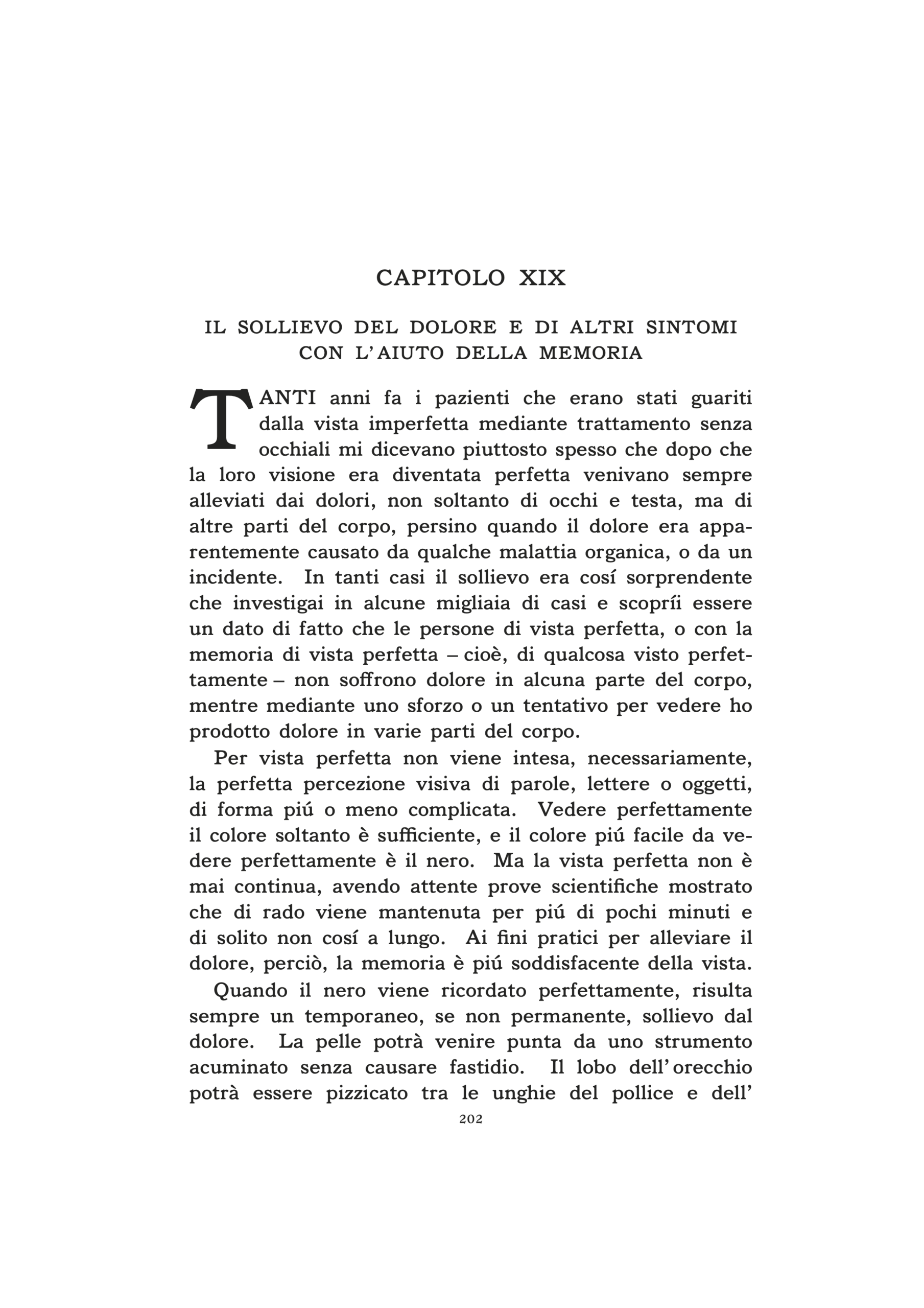 CAPITOLO DICIANNOVESIMO — Il sollievo del dolore e di altri sintomi con l’ aiuto della memoria