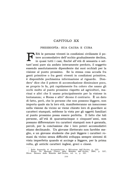 CAPITOLO VENTESIMO — Presbiopía:  sua causa e cura
