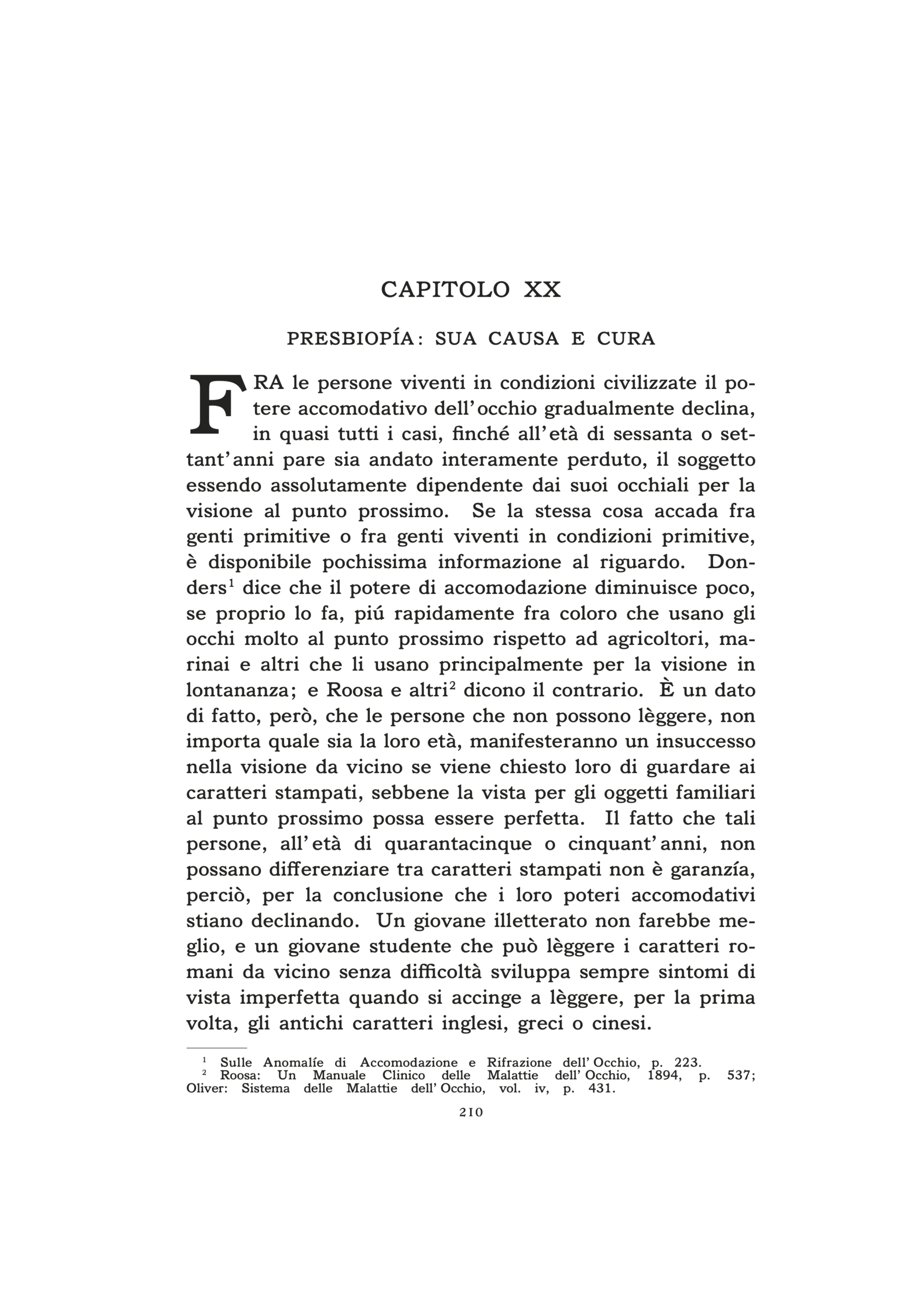 CAPITOLO VENTESIMO — Presbiopía:  sua causa e cura