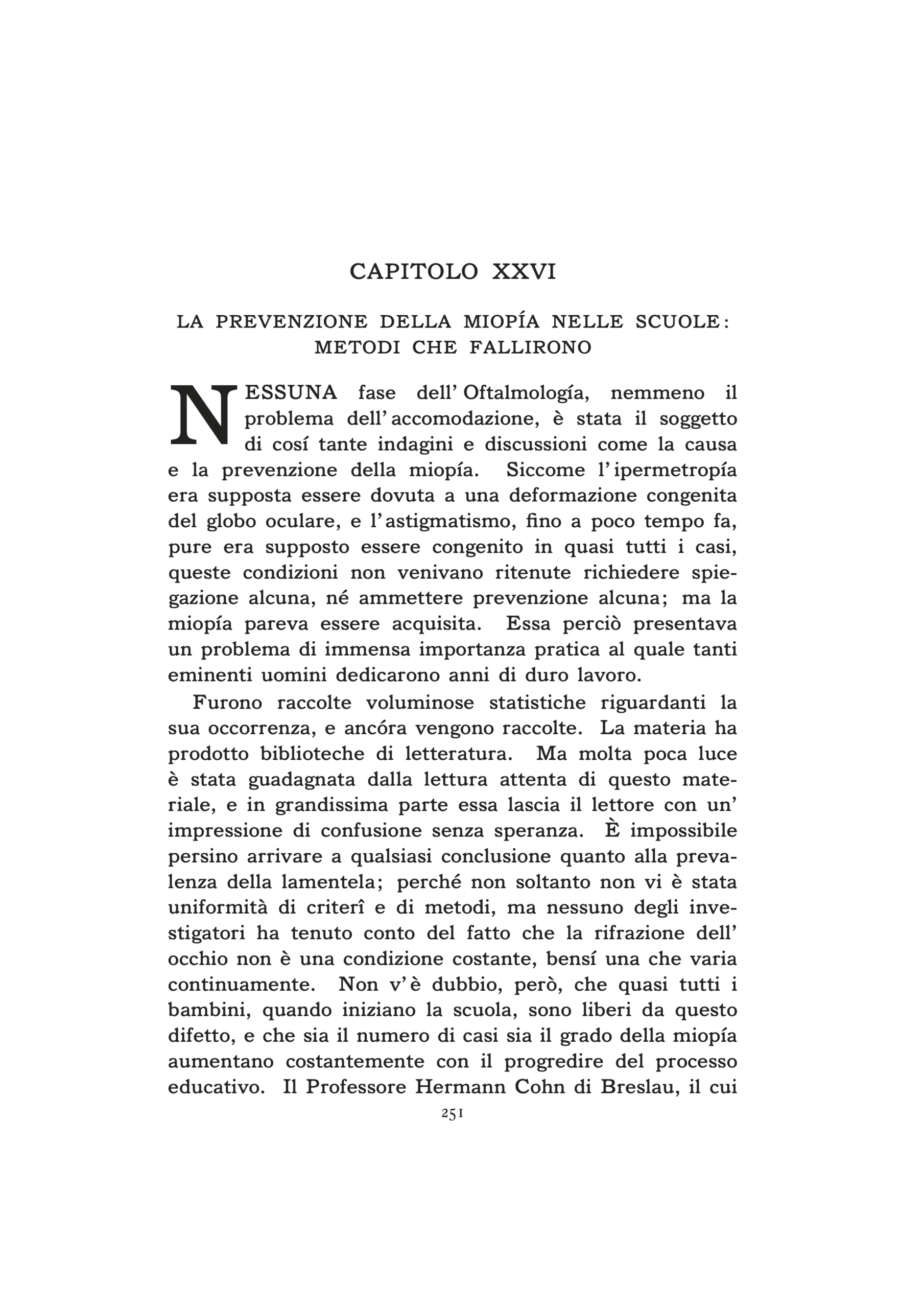 CAPITOLO VENTISEIESIMO — La prevenzione della miopía nelle scuole: metodi che fallirono