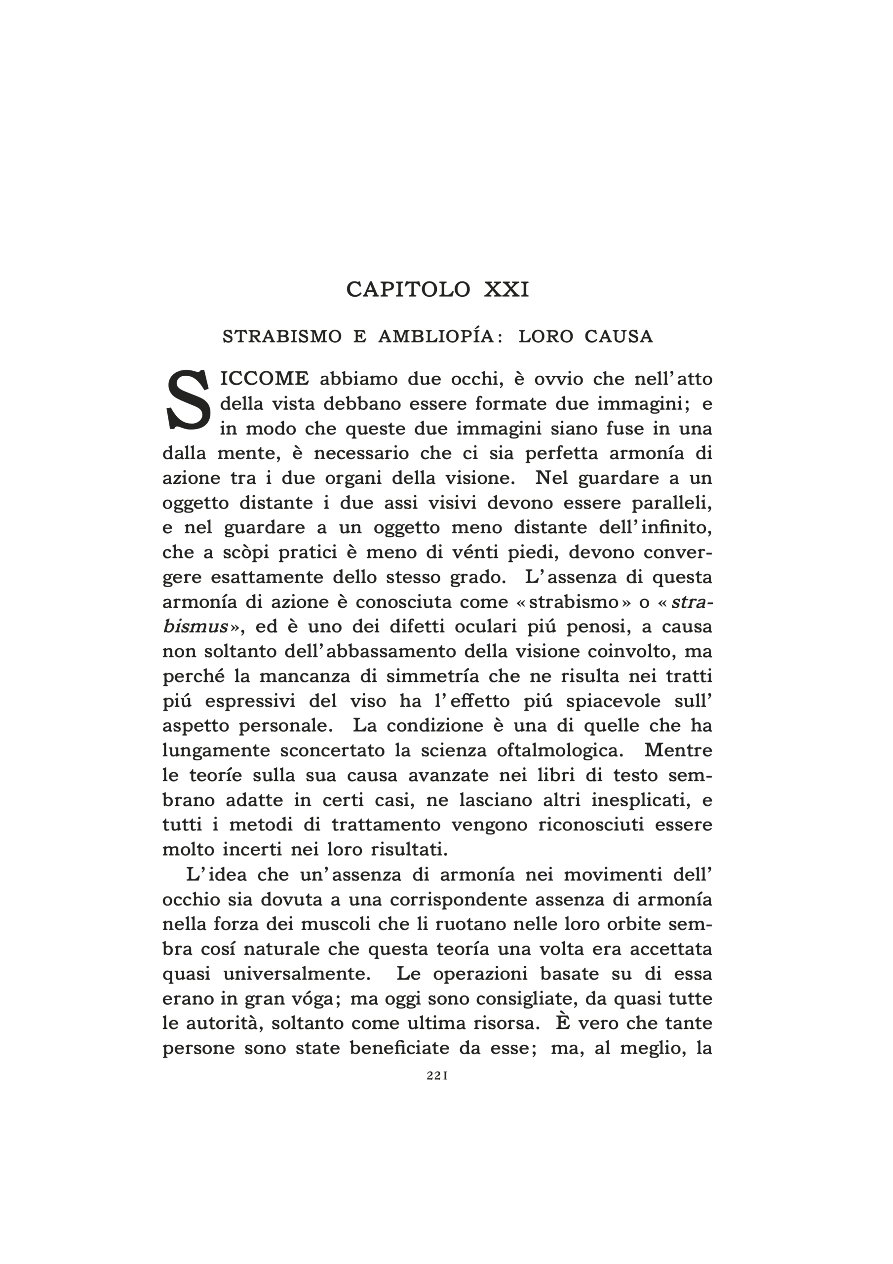 CAPITOLO VENTUNESIMO — Strabismo e ambliopía: loro causa