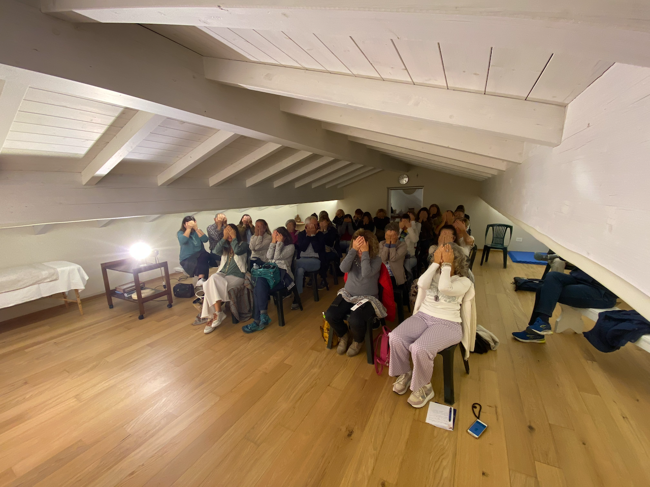 La cornice era la suggestiva saletta mansardata del centro olistico «Le Porte dell’ Anima» situato nell’ Alto Modenese, in località Disvetro di Cavezzo, e messa a disposizione dalla signora Monica, che gestisce l’ attività, e che ringraziamo molto sentitamente per la preziosissima collaborazione offertaci.