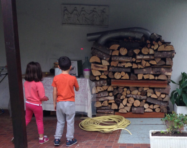 Sveva ha la stessa età di Achille (sei anni) e una miopía un po’ piú grave della sorella Vittoria, ma non avendo mai messo occhiali siamo certi che nel tempo se la caverà bene lo stesso. Nella foto sottostante vediamo i due piccoli socii esercitarsi nel dondolío lungo usando come guida un puntatore laser di colore rosso. È stato entusiasmante e commovente sentire i due piccoli spiegarsi a vicenda i movimenti corretti dei talloni e del busto per praticare il dondolío lungo senza sforzare. Pur troppo, per motivi di riservatezza non possiamo pubblicare la registrazione video di questi divertentissimi minuti ma assicuriamo che era come se aleggiasse nell’aria lo spirito di Emily C. Lierman che guidava questi piccoli “pazienti” a curare gli occhi e la mente con il riposo assicurato dal movimento dondolante del corpo.