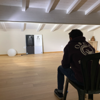 Seguendo il buonissimo esempio di sua mamma, una nuova socia di famiglia quindicenne si cimenta con la tabella di controllo per tutto il giorno passando da un imbarazzato livello di visione assai scarso a lampi di 18/20 e 18/10.  Altre due visitatrici partecipano solamente al mattino perché si rendono conto che hanno apparentemente risolto il loro problema e quindi se ne vanno a casa anzitempo.