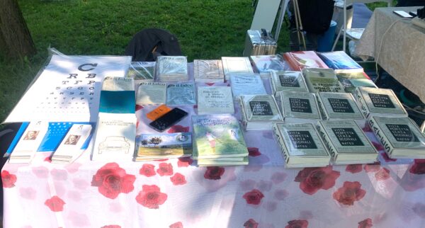 In particolare abbiamo distribuito una trentina di esemplari del «SegnaLibro della Vista Perfetta» e raccolto una decina di indirizzi di posta elettronica a cui inviare il nostro notiziario informativo gratuito, e per l’ occasione abbiamo anche raccolto circa cento euro di donazioni elargendo in cambio ai tre donatori una copia, completa di omaggi, del volume base «VISTA PERFETTA SENZA OCCHIALI», che è il caposaldo sul quale fondiamo tutta la nostra attività di mutuo-aiuto per la diffusione corretta delle pratiche di riposo mentale che abbiamo imparato studiando l’ opera inimitabile del Dott. Bates.